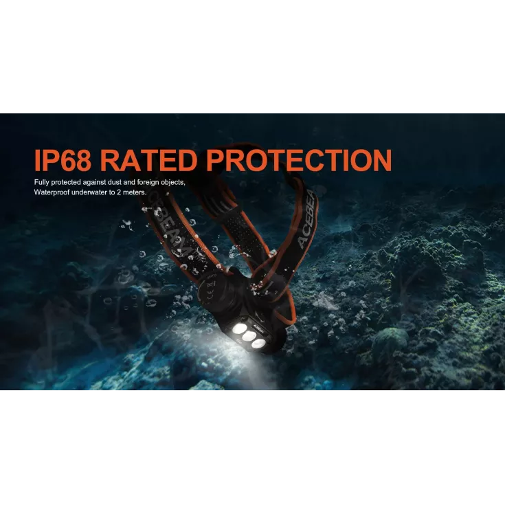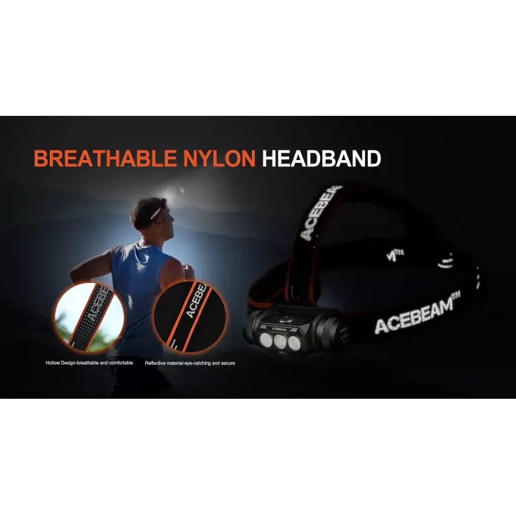 The Acebeam H50 2.0 is made from aluminium alloy with a hard anodised finish and includes an ergonomically designed bracket mount and breathable headband.