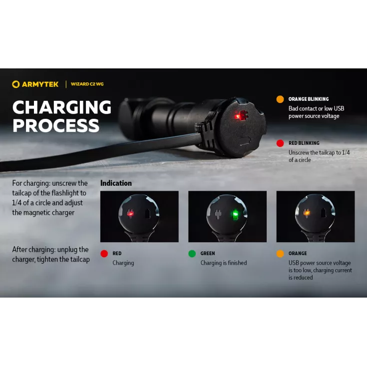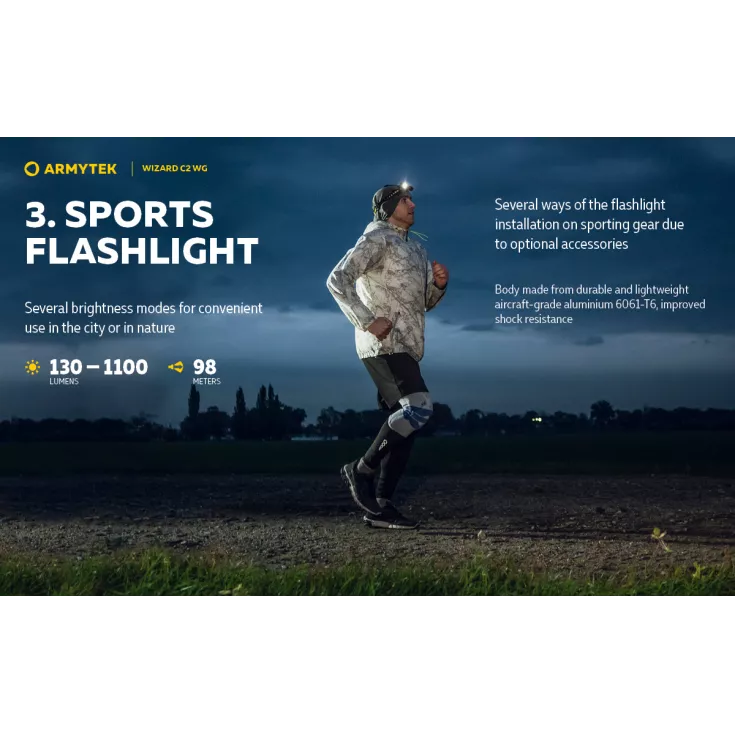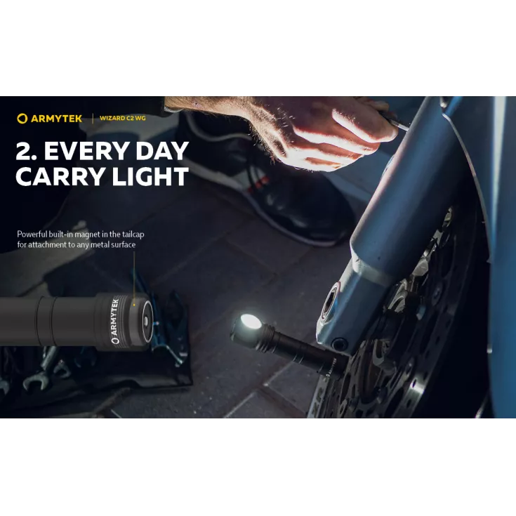 The Wizard C2 WG has a variety of carry options, including the headband, pocket clip, magnetic tail cap or using with Armytek’s helmet or bike mount (sold separately).