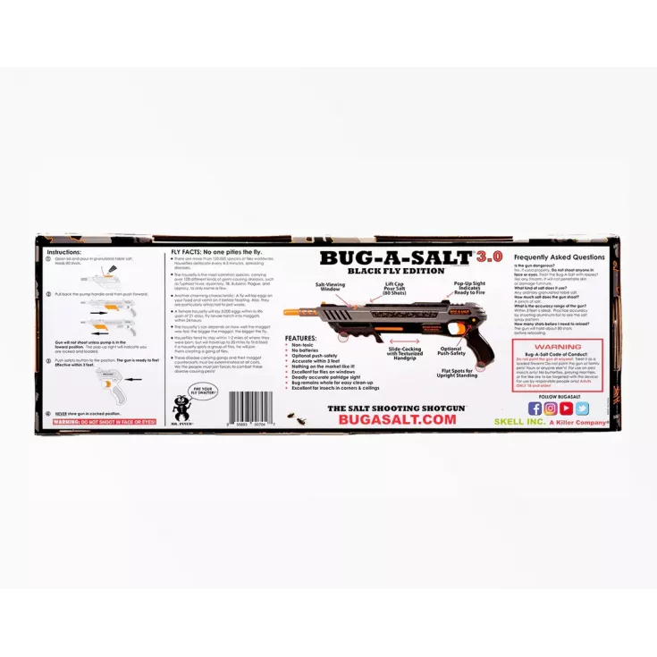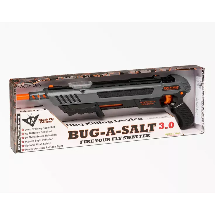 The Bug-A-Salt 3.0 from Skell Inc. is the latest and greatest innovation in pest control! Say goodbye to traditional fly swatters and chemical sprays – this unique device combines fun and functionality to help you keep your home bug-free with a blast of salt. Whether you’re dealing with flies, mosquitoes or other pests, this salt gun is an effective and entertaining solution.