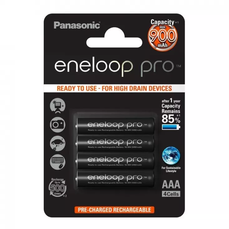 Eneloop Pro AAA NiMH batteries – 930 mAh, 1.2v.