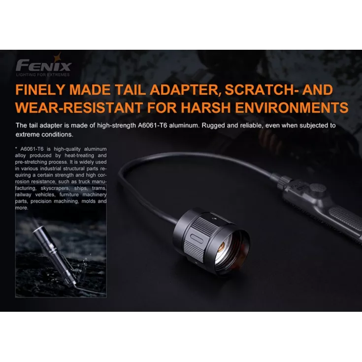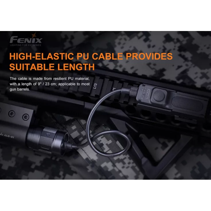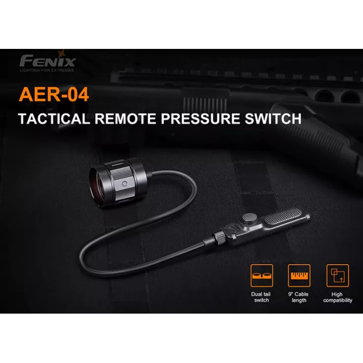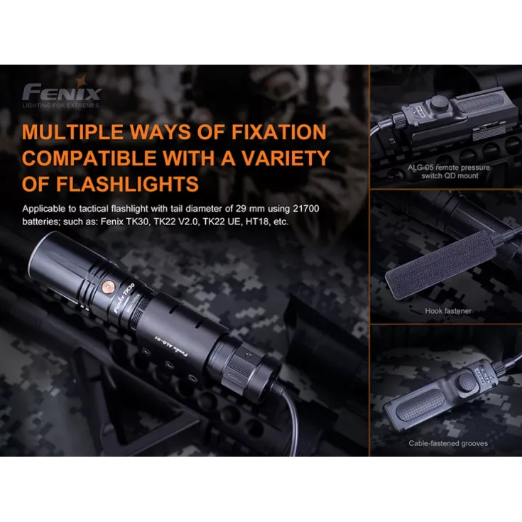 The Fenix AER-04 remote pressure switch has been designed for tactical flashlights that are powered by a 21700 battery, such as the Fenix TK30, TK22 V2, TK22 Ultimate Edition and HT18.