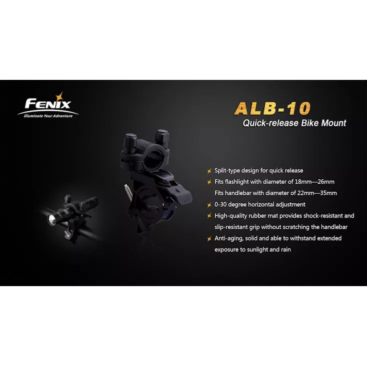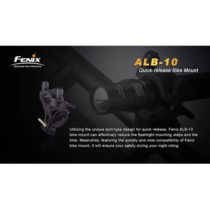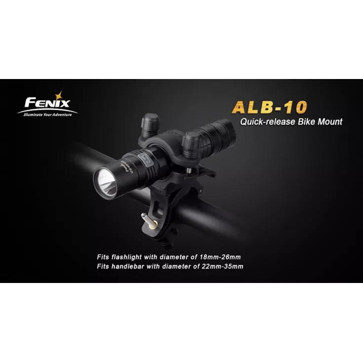 Can accommodate Fenix Torches UC40, TK22, TK15, PD12, LD22, LD12, E35, E25 & is compatible with bike lights BC30, BC30R & BC21R (ideal as a second mount if you have more than one bike)