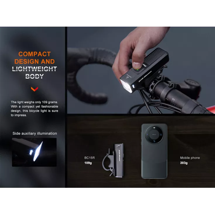 The Fenix BC15R rechargeable bike light is for the everyday cyclist. The lightweight, compact light offer 400 lumens and a 78 meter beam distance.