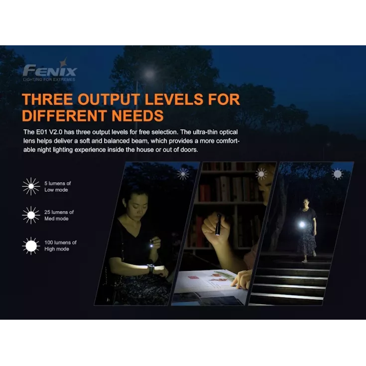 The Fenix E01 V2.0 is the upgraded version of the popular E01 keyring light and offers lots of improvements whilst keeping the best and most loved features. The E01 V2.0 has a maximum output of 100 lumens from the Cree XP-G2 S3 LED and has two additional brightness levels so you can find the right output for your everyday application.