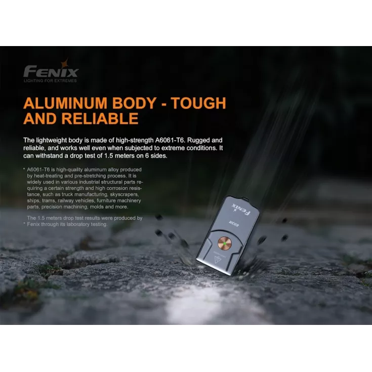 Featuring an all-metal body, the E03R is sleek and smooth, making an excellent addition to your keychain. With a weight of just 22g, the light can alternatively be stored in a pocket or attached to your accessories using the included split ring.