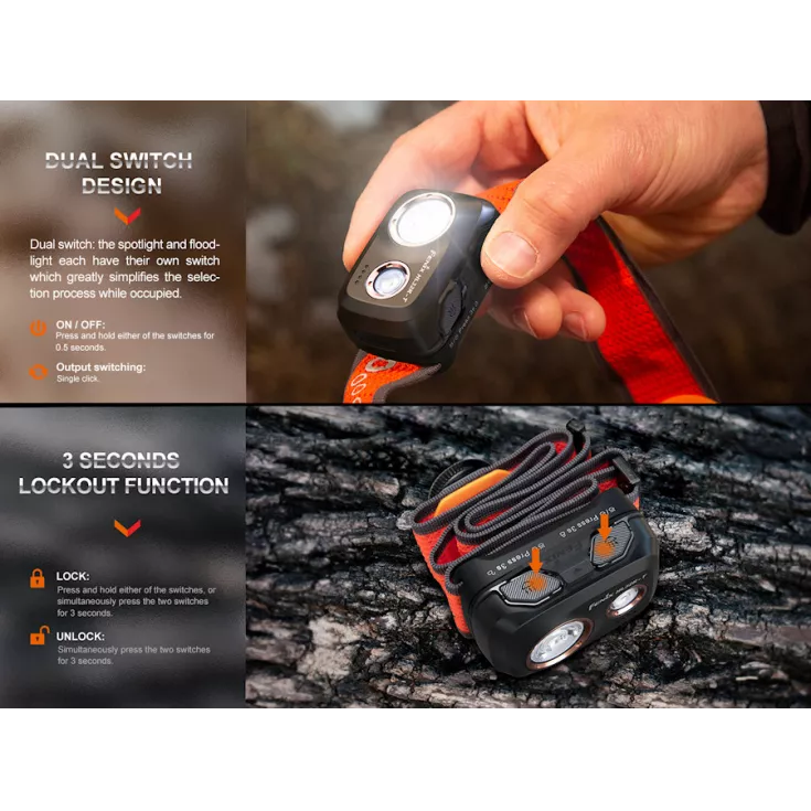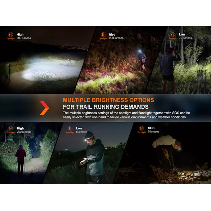Ideal for trail running, the Fenix HL32R-T offers 3 brightness settings from each beam and will last up to 20 hours at the 70 lumen medium setting for extended running sessions.