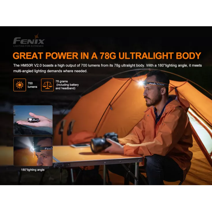 The Fenix HM50R V2.0 is a compact and lightweight rechargeable multipurpose headlamp. Powered by a single 16340 Li-ion battery (included) the HM50R V2 has an impressive output of 700 lumens.