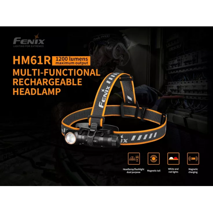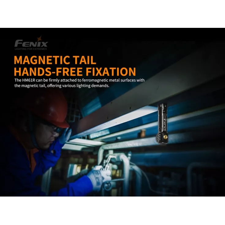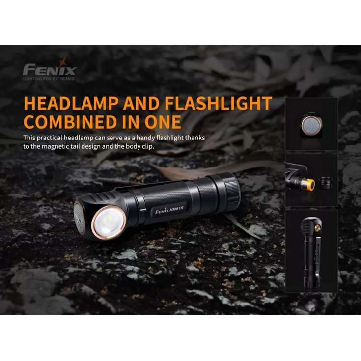 The Fenix HM61R is a rechargeable head lamp that can also be used as a handheld light or attached to clothing with the supplied clip. A magnetic tail design also allows for hands free use when attached to ferromagnetic metal surfaces. For use as a head torch Fenix include a high quality light weight headband with reflective strips for better visibility to other road users.