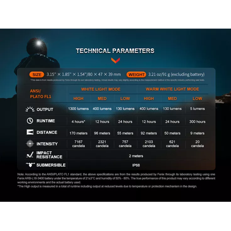 High: 1300 lumens – 170 meters – 4 hours