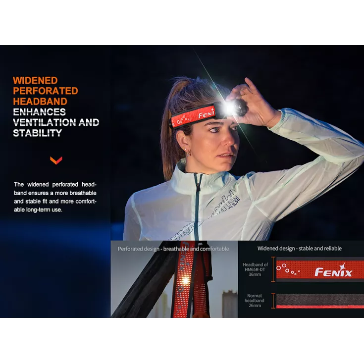 With comfort and durability being paramount, the Fenix headtorch is made with a lightweight magnesium alloy material, providing less weight and longevity. The widened perforated headband ensures a more breathable, stable fit with a comfortable long-term use. It features a new sport fit system providing convenient and flexible adjustment of the band with a single hand while on the move.