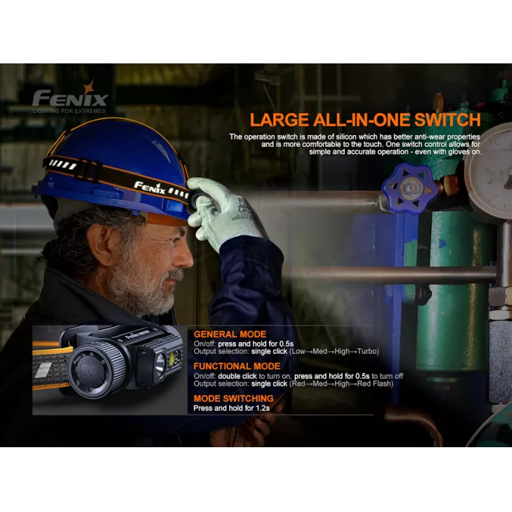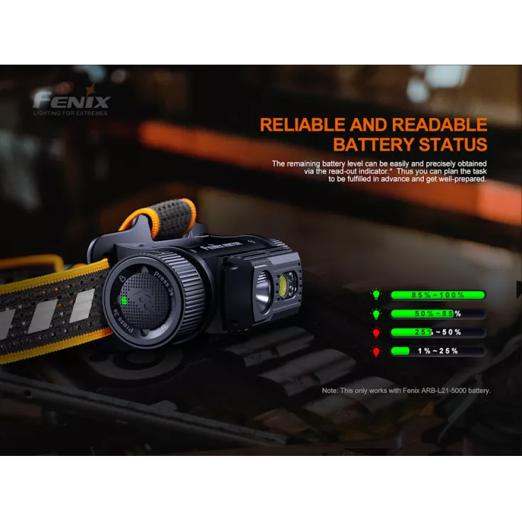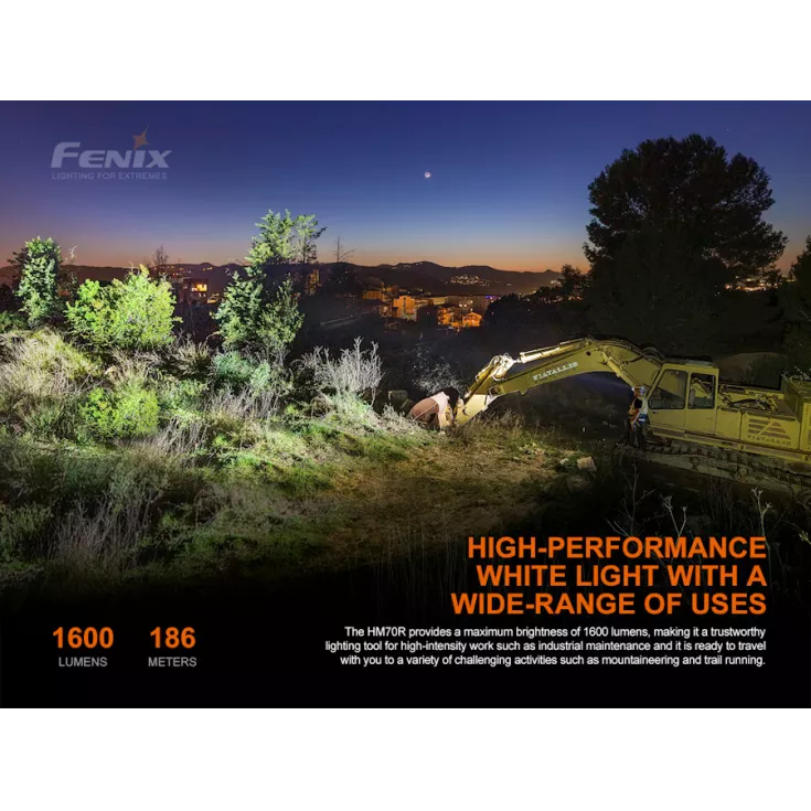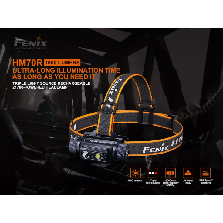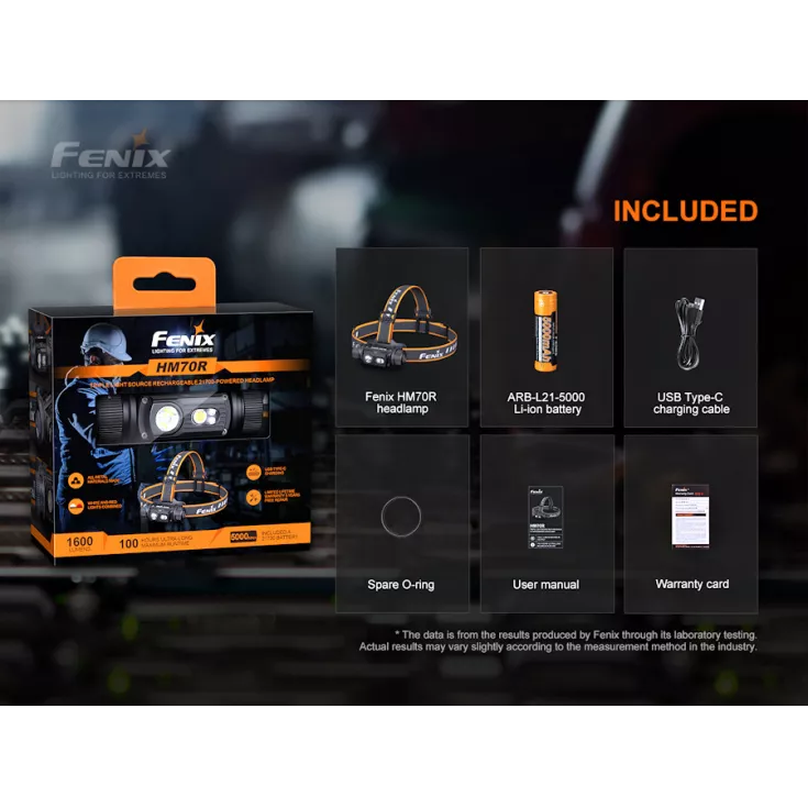 Fenix HM70R Includes: ARB-L21-5000 5000mAh 21700 Li-ion battery, USB Type-C Charging Cable and spare o-ring.