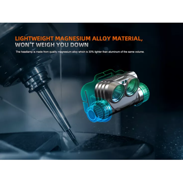 The Fenix headlamp is made out of a lightweight magnesium alloy material which can withstand a drop test of 2 meters on all 6 sides and has passed a 24 hour salt spray test.