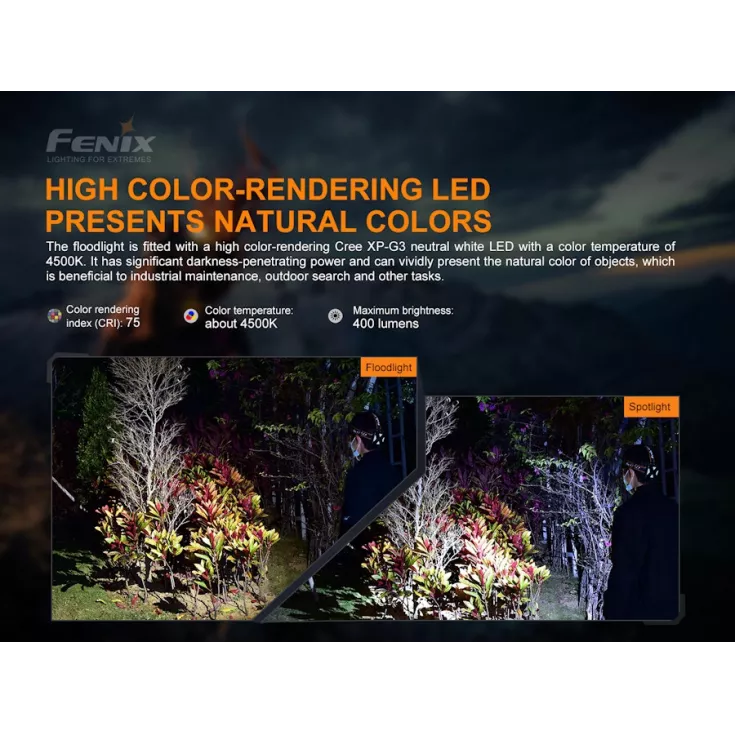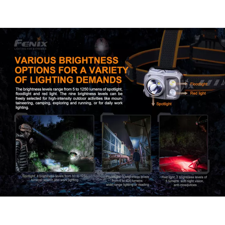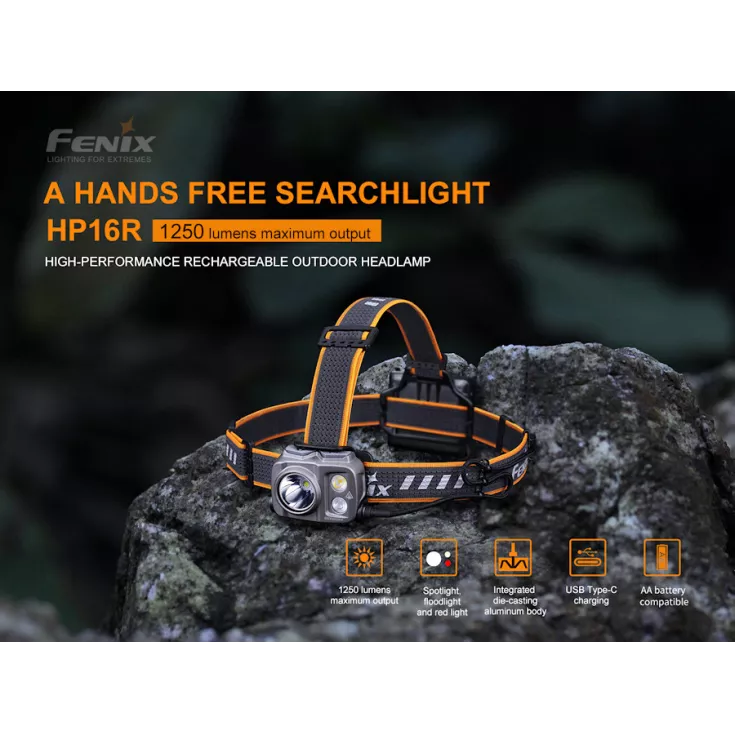 The Fenix HP16R head torch features three separate light sources of spotlight, floodlight and red light making it very versatile for all kinds of hands free usage.