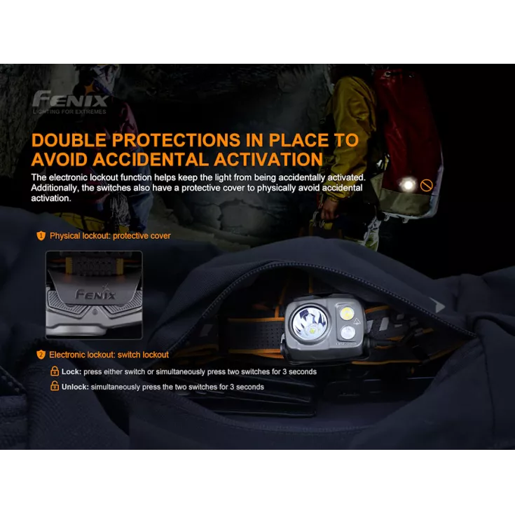 There are two lockouts to prevent accidental operation, one mechanical and also an electronic lockout by pressing and holding both buttons simultaneously for three seconds.