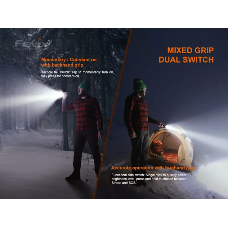 Operation of the LD22 V2.0 is via a tactical tail switch with momentary on function for on and off, plus a side switch to change lighting mode.