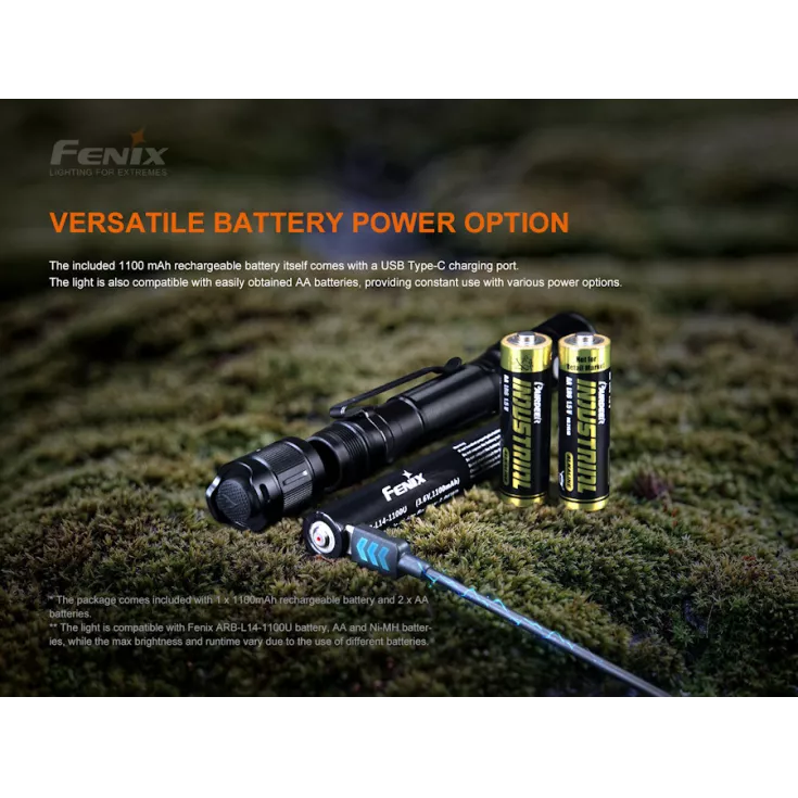 The Fenix LD22 V2.0 is the latest upgrade to this popular model and now includes a 1100mAh rechargeable Li-ion battery pack (USB-C charging port on the battery). The LD22 V2 can also be powered by two AA batteries as per previous versions of this torch, making it a great EDC / backup light.