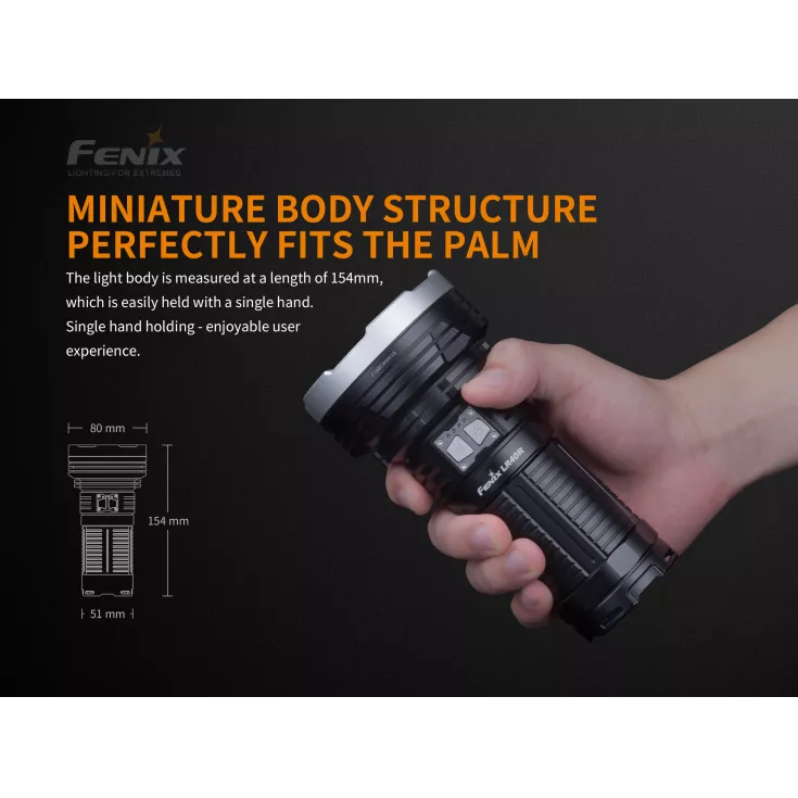 To avoid accidental activation during storage and transportation, the LR40R has an effective lockout function. The flashlight has been carefully designed to provide a torch that is still compact and manageable for lots of applications, even with such an impressive output. The LR40R fits comfortably in the palm and can be operated with one hand.