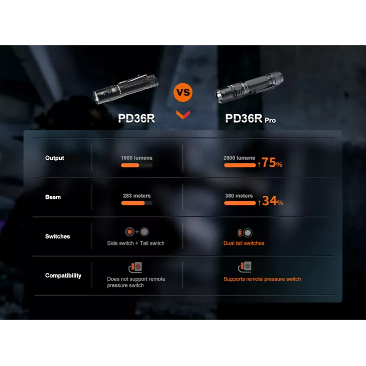 **For a limited time the PD36R Pro (in black only) comes in a set with a FREE E03R V2.0 keyring torch in grey!**
