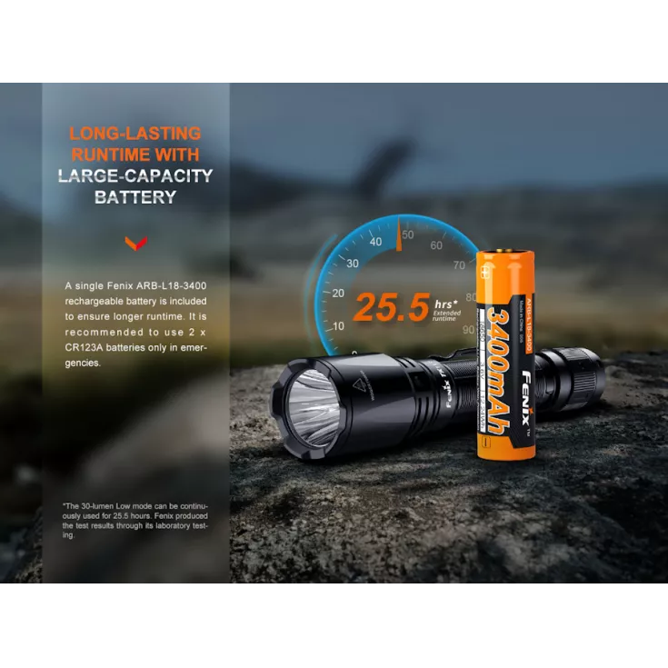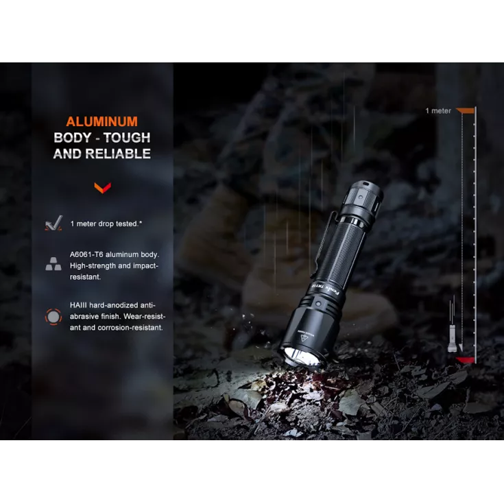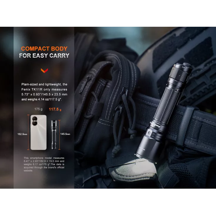 The Fenix TK11R is a palm sized tactical torch specifically designed for police, search and rescue and other constabularies. It has a maximum output of 1600 lumens and a maximum beam distance of 420 meters, powered by 1 x 18650 li-ion battery (included) The torch can be recharged using the USB-C charging port.