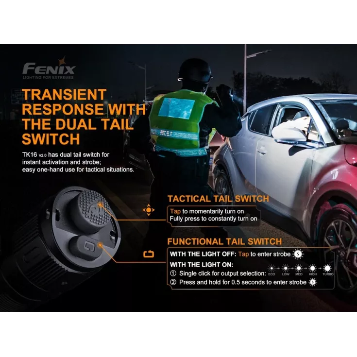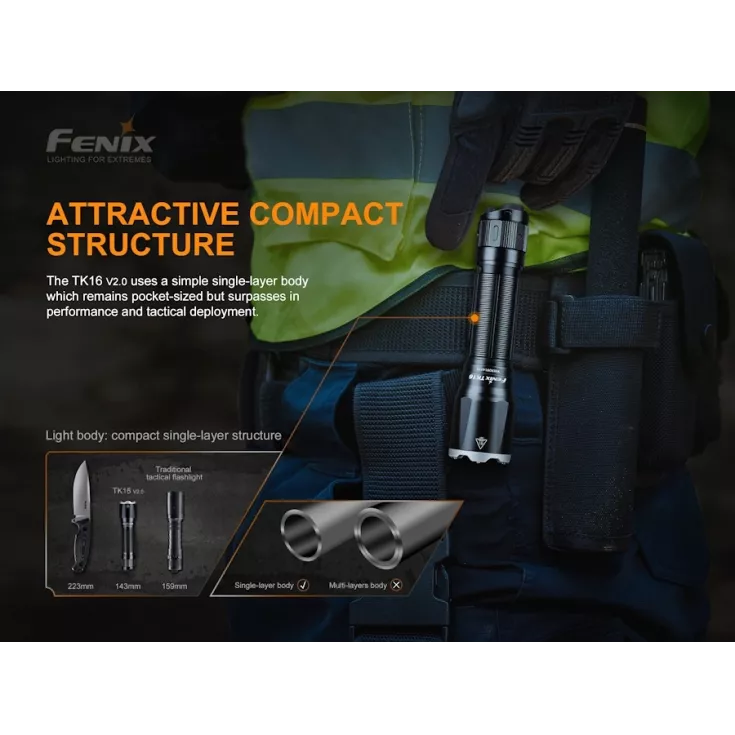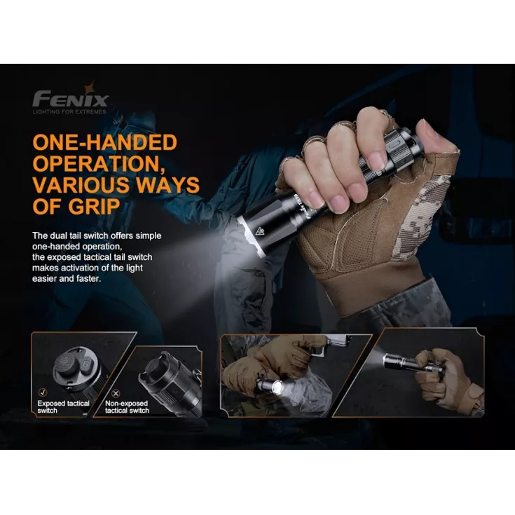 Compatible with a range of Fenix accessories (available separately) including the AOF-M red filter, AOT-M traffic wand and remote pressure switch.