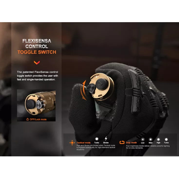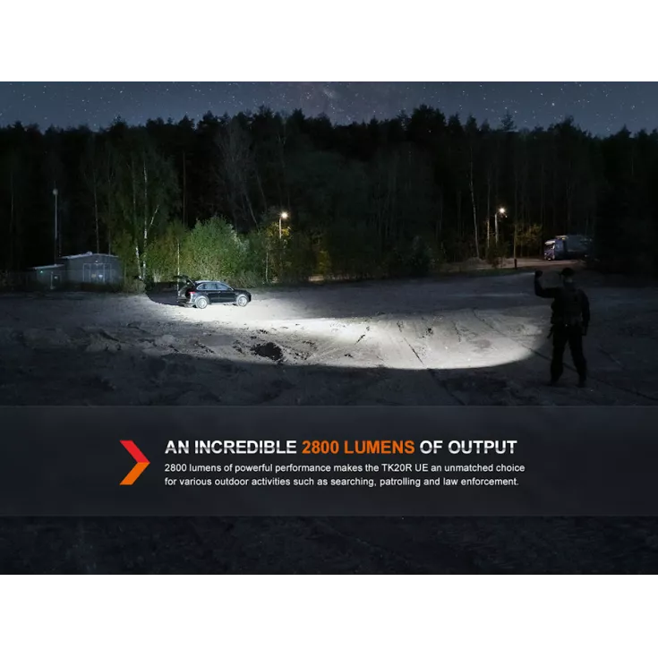 The Fenix TK20R Ultimate Edition is an update on the extremely popular TK20R v2.0 model. A rechargeable tactical torch, it has a maximum output of 2800 lumens, a maximum beam distance of 465 meters and is powered by a single 21700 Li-ion battery (included). With an innovative, newly developed Flexisensa rotary control switch . it is easy to switch between tactical, duty and lock modes via a single handed tail cap operation.