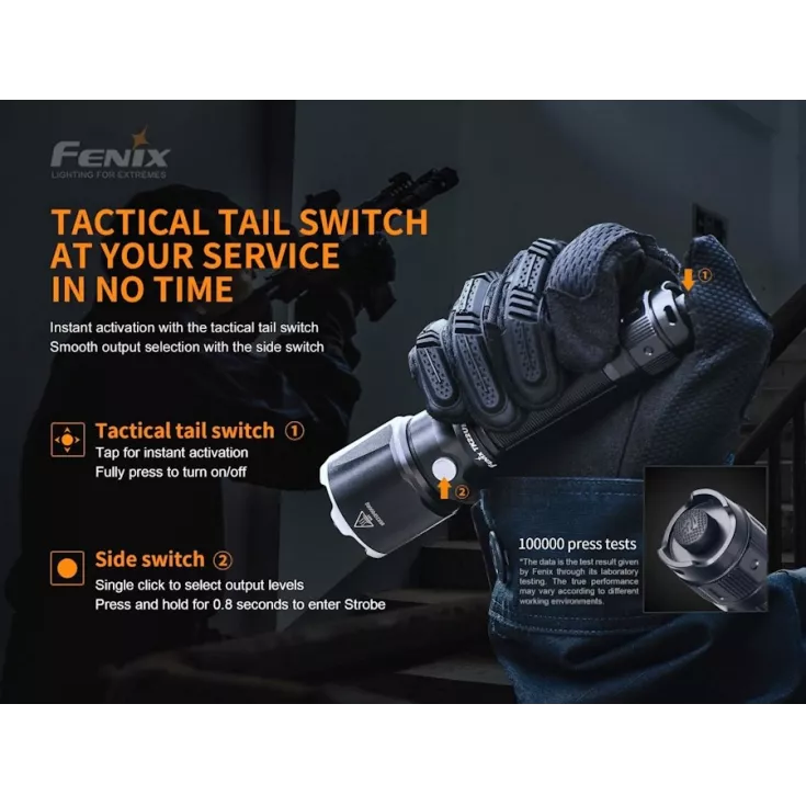 The TK22 UE has a tactical user interface made up of a tail switch and side switch which allows for smooth and simple access to the four brightness levels and strobe mode.
