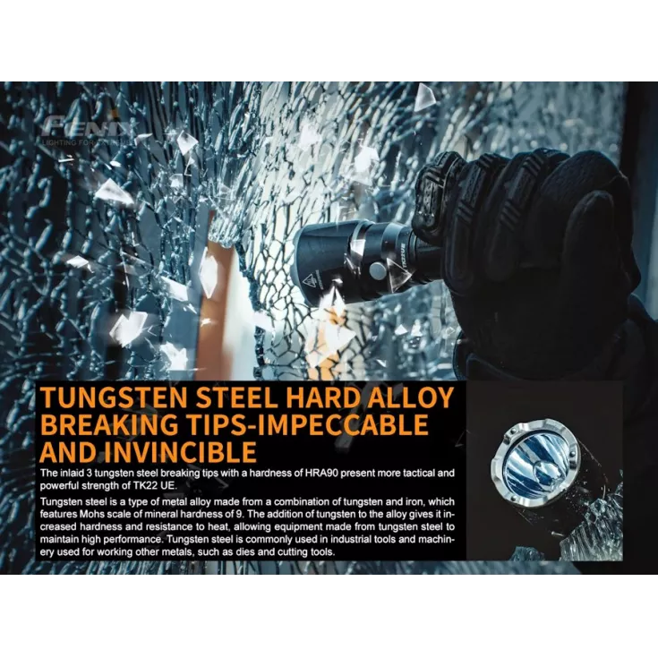 Similar to the new Fenix TK22 V2.0, the UE model features a rugged stainless steel bezel with tungtsen glass breaker inserts for emergency applications.