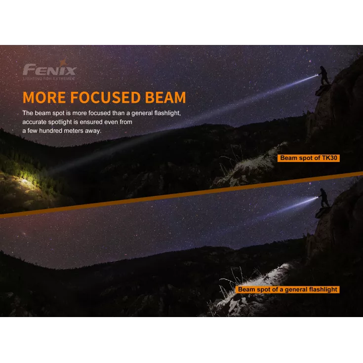 The Fenix TK30 is the first light of its kind, featuring a Class 3B white laser beam with a maximum output of 500 lumens and incredible maximum beam distance of 1200 meters! The torch is powered by an included ARB-L21-5000U 21700 battery with a built-in Type-C USB port for direct charging into the cell using the included cable.
