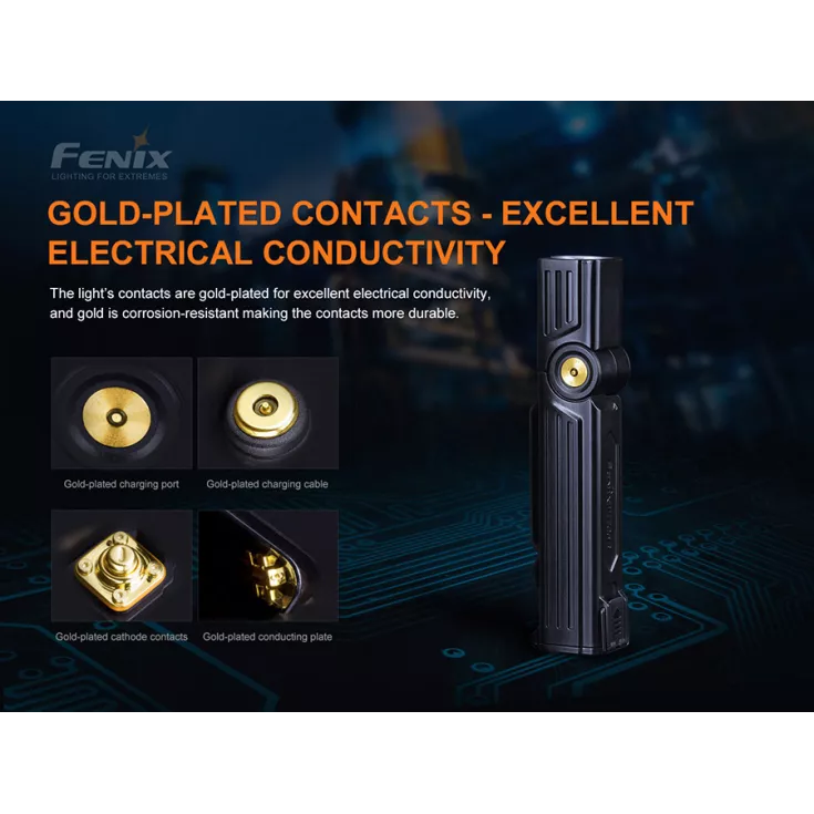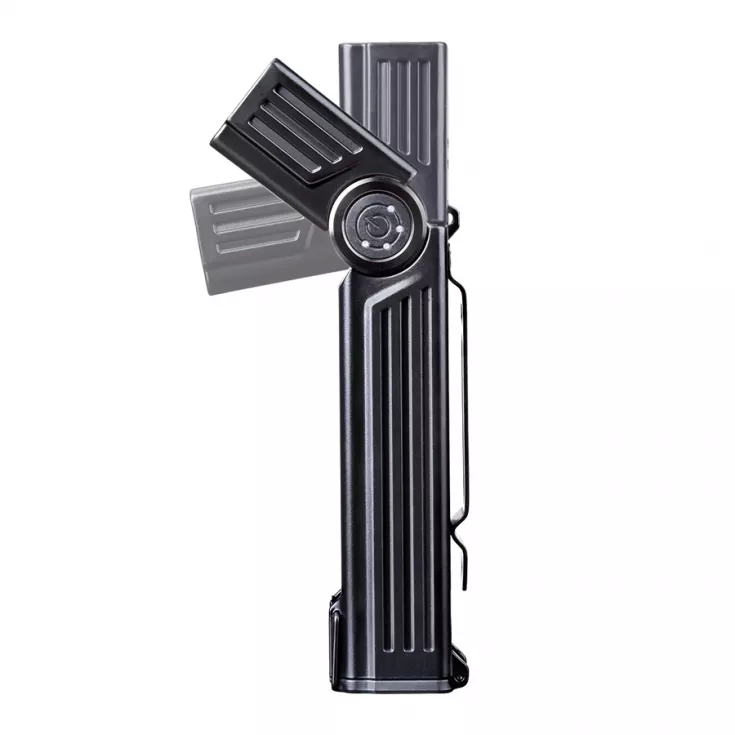 The Fenix WT25R is a rechargeable task light featuring a pivoting head, allowing for hands free directional lighting. A magnetic base can be attached to surfaces such as a car bonnet and there is also a large pocket clip that can attach to clothing or webbing.