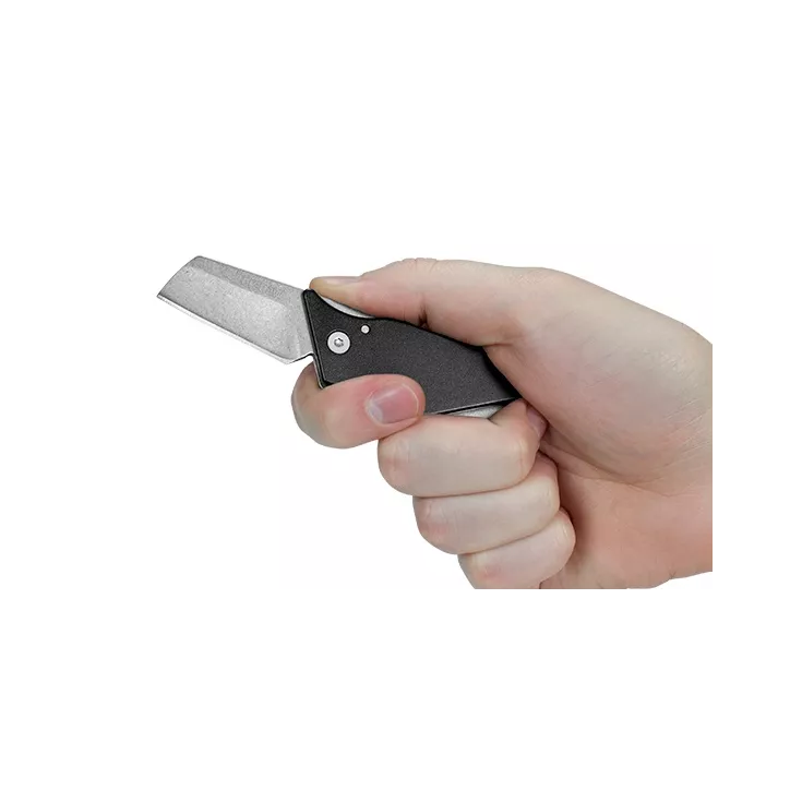 The blade is made from 8Cr13Mov steel with a stonewash finish to mask any scratches that occur over time. The Pub’s blade is a modified sheepsfoot with a straight edge and a clipped tip, rather than rounded. The blade slots neatly into the handle, to reveal simply push on the key ring attachment until the blade is level with the handle.
