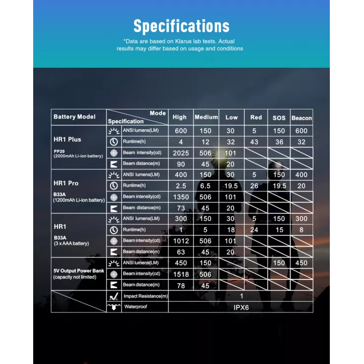 Plus SOS (150 lumens) and Beacon (600 lumens).