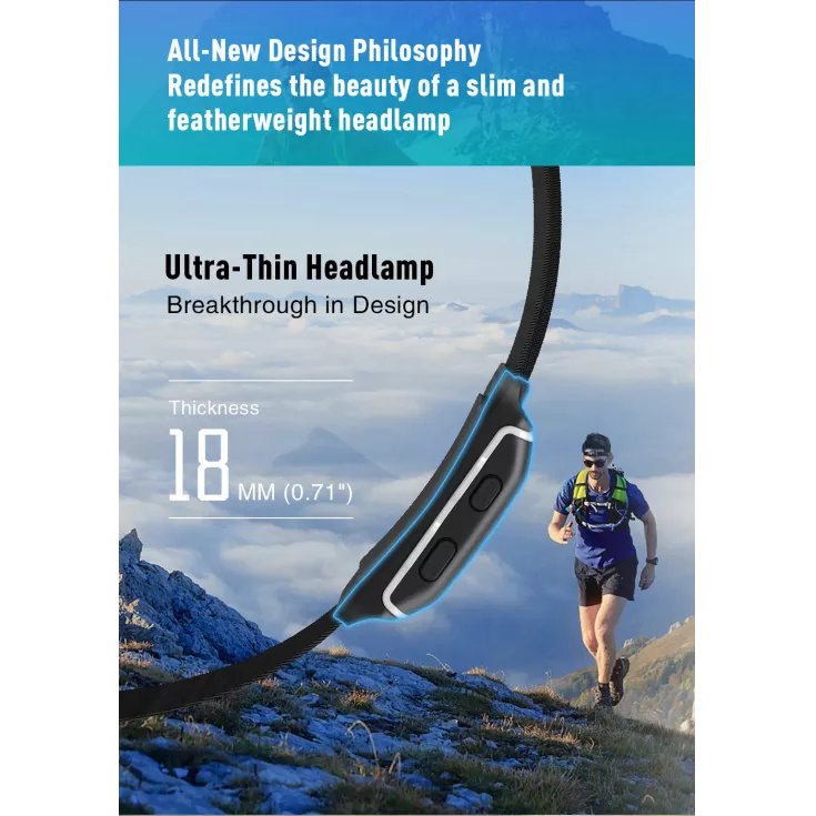Lightweight, compact and offering excellent runtimes, the HR1 Plus is designed for running, especially longer races up to 100km. To ensure your comfort the headlamp is ultra-thin at just 18mm and the headband is soft, breathable and absorbent.