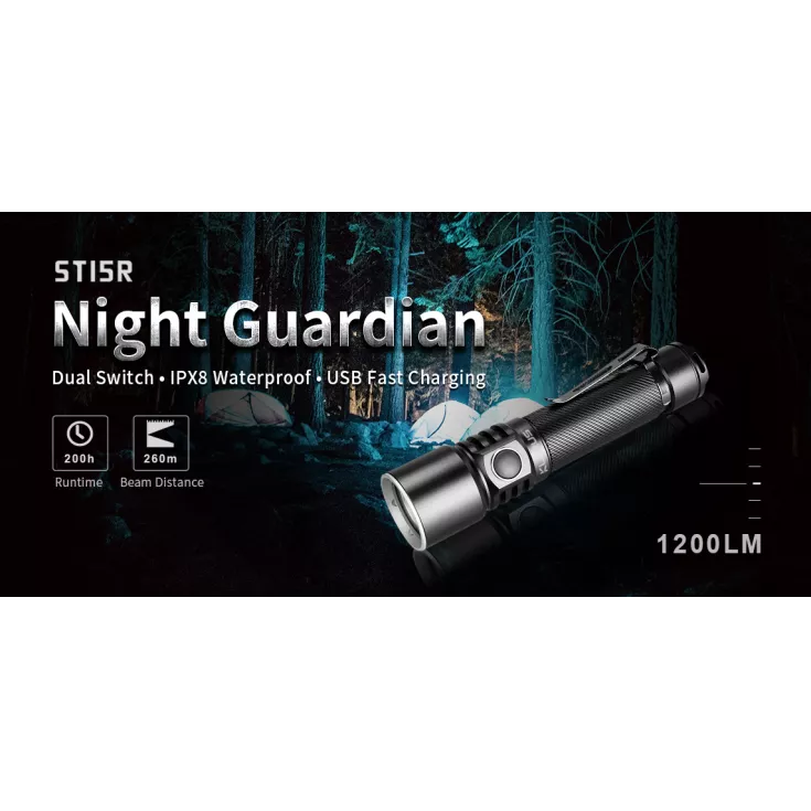 Nicknamed the ‘Night Guardian’, the ST15R offers a range of accessories to make it the ideal light for your application, whether it’s cycling and using the included bike mount, camping and using the diffuser or outdoor activities such as hiking and using the pocket clipc to attach the light to your gear.