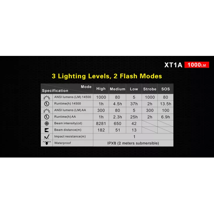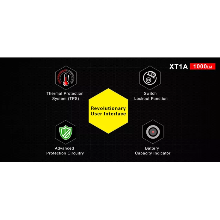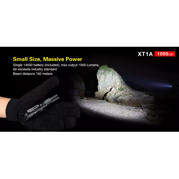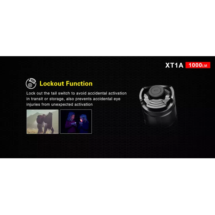Ideal for everyday carry, the XT1A is compact and lightweight with tactical features such as dual tail switch and powerful strobe mode. In addition to operating the three brightness levels and two flashing modes, the tail switch provides a lockout function to avoid accidental activation when the light is not in use.