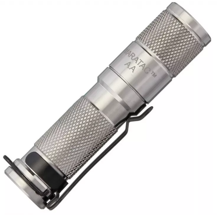 The Maratac AA flashlight has a maximum output of 265 lumens from the Cree XP-G3 cool white emitter and is powered by a single AA battery. The light is operated by a simple twisting head design to access the three brightness levels.