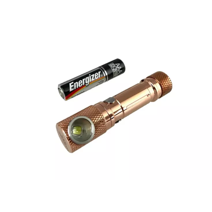 The Maratac Tactical Personal Flood light (TPF) has a maximum output of 185 lumens from the Cree G3 emitter and is powered by 1 x AAA battery. The LED sits on the side of the light creating a right angled beam which allows for free hand use when the torch is stood on the tail cap.