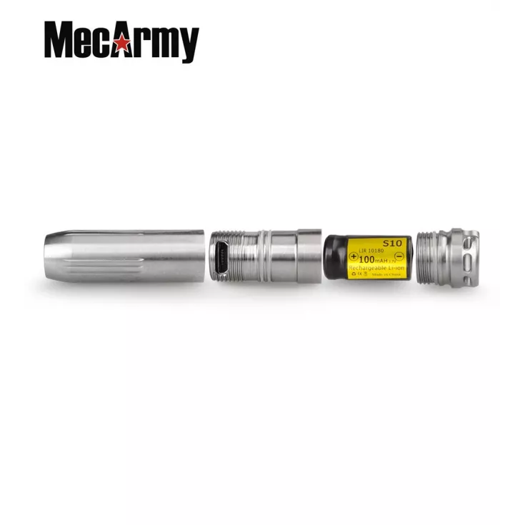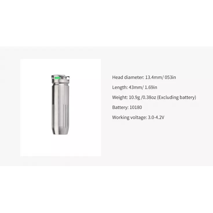 The MecArmy BL43T keyring flashlight has a maximum output of 130 lumens from the Cree XP-G2 LED and is powered by 1 x 10180 Li-ion battery. The bullet-shape torch is ideal for everyday carry and can easily be attached to your keyring or worn using the beaded neck attachment.