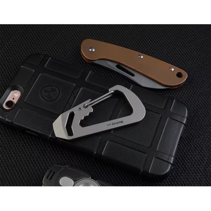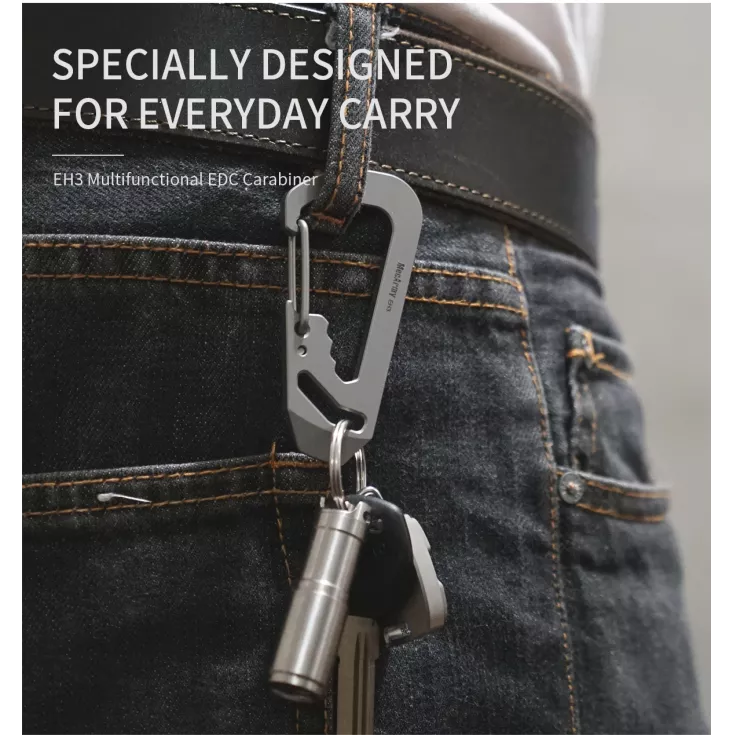 The MecArmy EH3 is a multi-functional carabiner clip, featuring a bottle opener, wrench, pry bar, screwdriver and nail remover. The useful tool is perfect for attaching to your keyring for everyday carry.