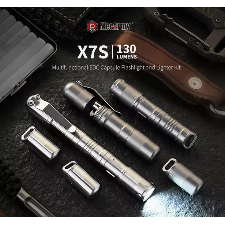 The MecArmy X7S is a multi-functional everyday kit, containing a flashlight, capsule and lighter which can be swapped, adjusted and changed to best suit your requirement.