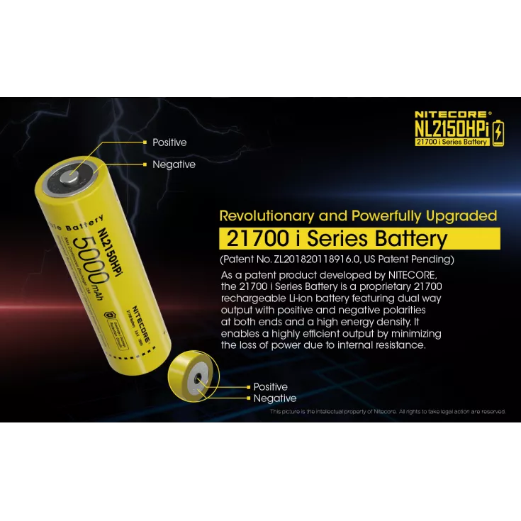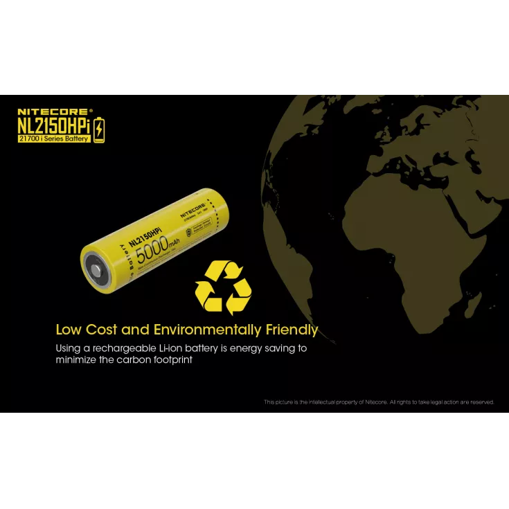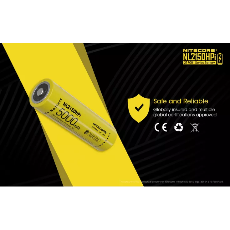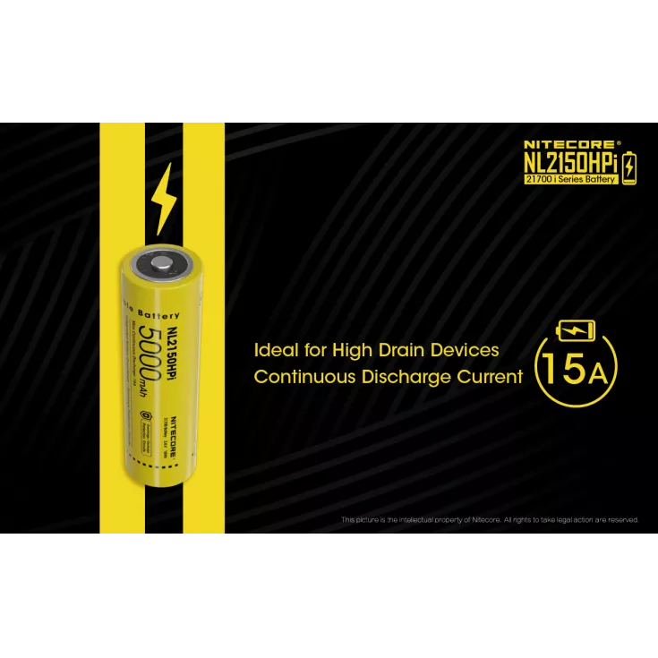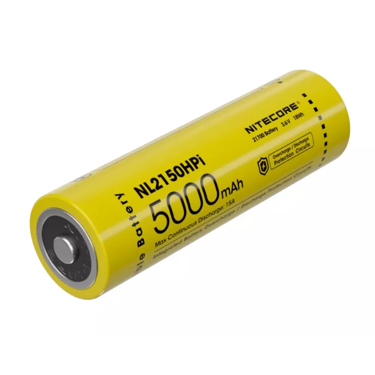 The Nitecore NL2150HPi is a rechargeable 21700 li-ion battery with a capacity of 5000mAh and a 15A continuous discharge current. Please note, this battery is specifically designed for the Nitecore i4000R, P10iX and P20iX flashlights.