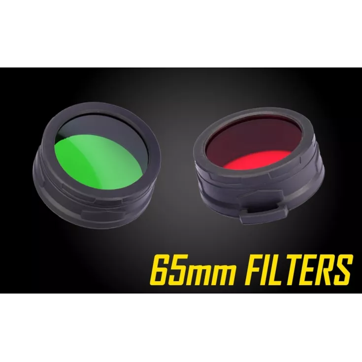 Nitecore NF65 Filter (65mm) in red and green. Suitable for flashlights with a head diameter of 65 mm.