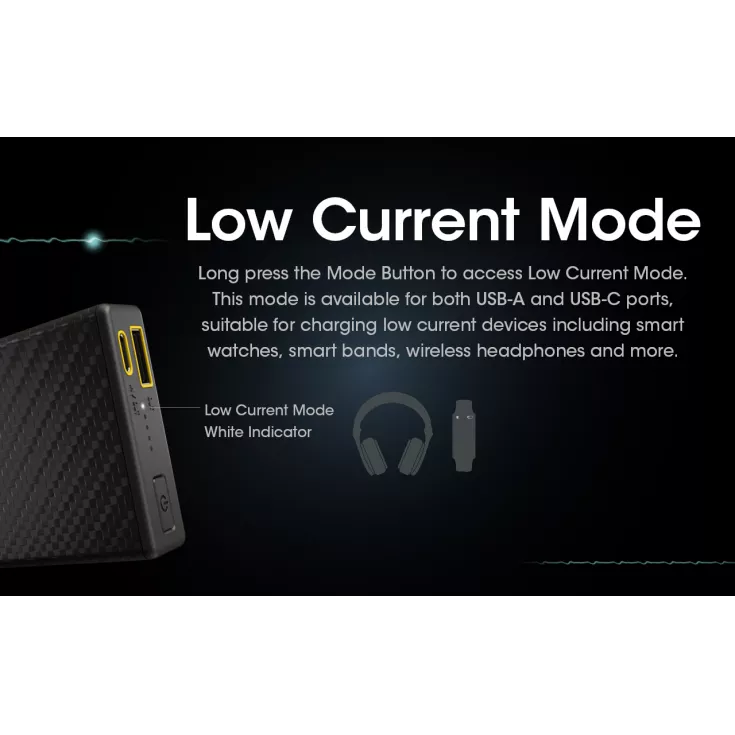 The power bank has a large capacity creating sufficient power for smartphones, GPS, headlamps, earphones and more. Featuring a USB-A and USB-C output, the Carbo 20000 can detect different devices with 20W output and 18W input. The Carbo 20000 offers a low current mode, suitable for charging low current devices including smart watches, smart bands, wireless headphones and more.