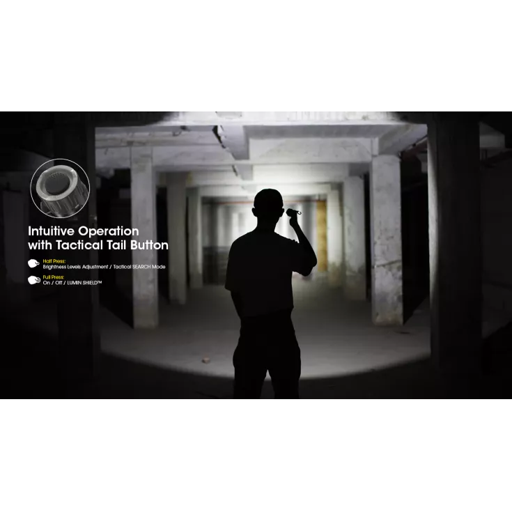 Lumin Sheild feature means that in any mode (except for full lockout) a full press and hold of the tail button activates all 9 LED cores to create a 4000 lumen wall of light, offering unparalleled experience in self-protection.