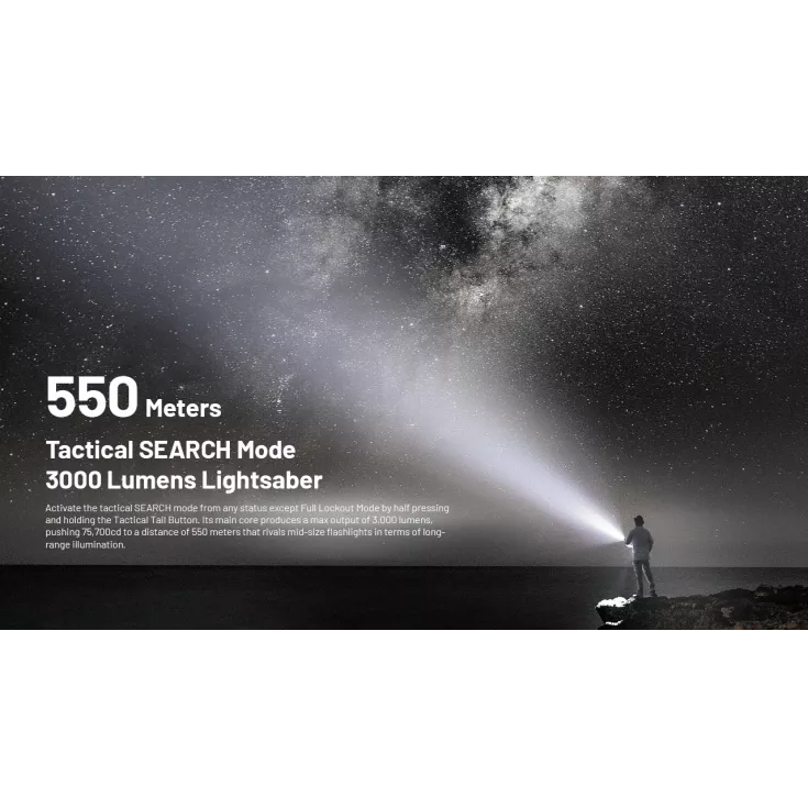 Search (Spotlight): 3000 lumens – Burst – 550 meters