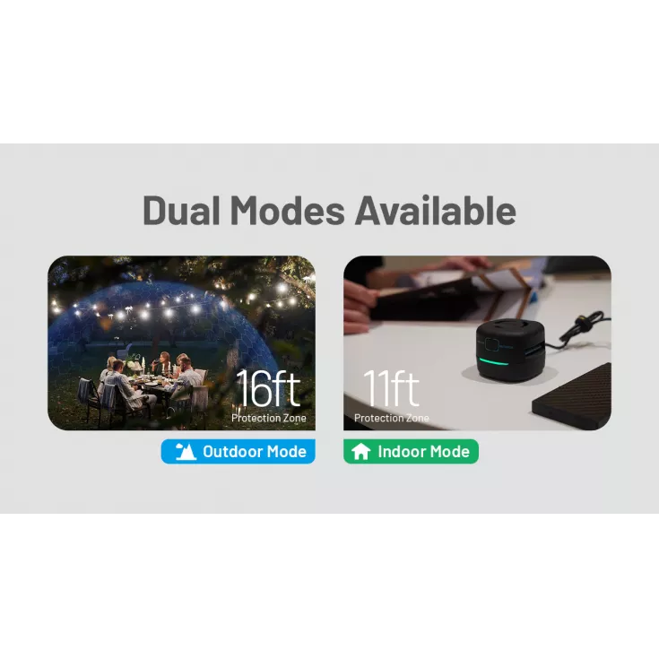 The EMR30 SE can be used both indoors and outdoors with the indoor protection zone reaching 11 feet and the outdoor protection zone reaching 16 feet. The wind resistant design with built in fan allows ingredients from the mosquito repellent mat to diffuse out quickly and powerfully so is still effective when used outside.