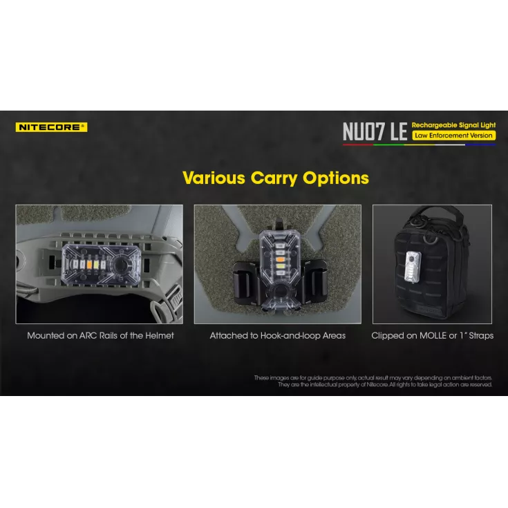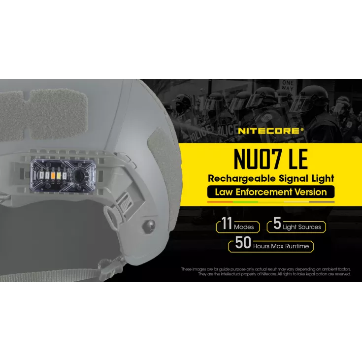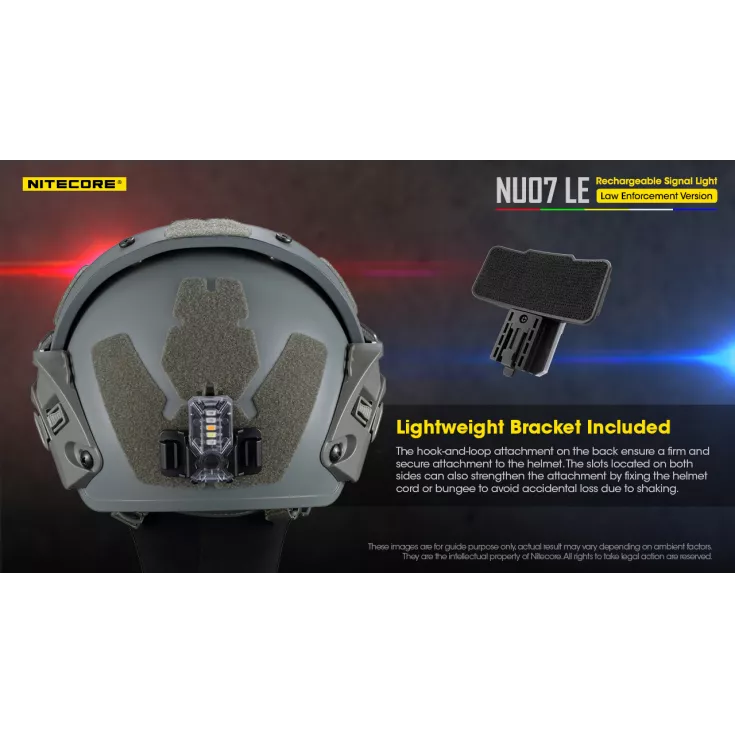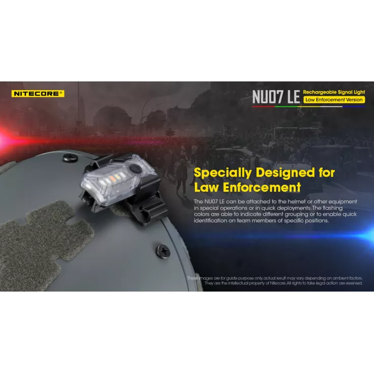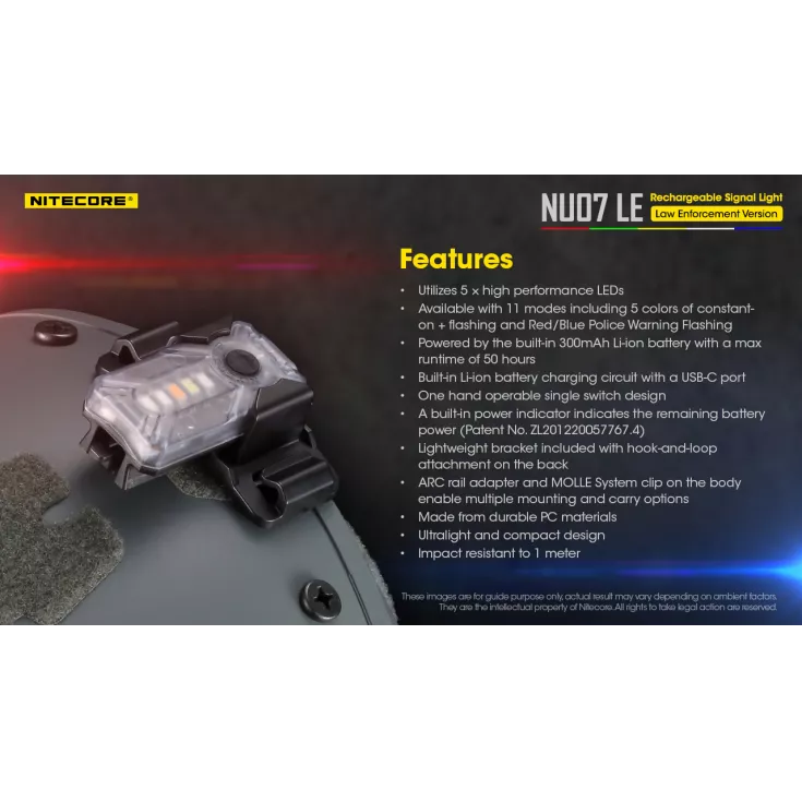 Primarily designed for law enforcement to be attached to a helmet or other equipment to enable identification of team members, the NU07 LE also has a wide range of uses for day to day illumination.