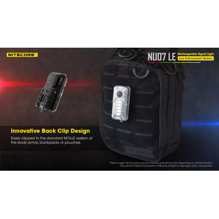 The Nitrecore NU07 LE is a rechargeable signal light with 5 light sources; Red, Green, Yellow, White & Blue with 11 different modes. Mode memory function remembers the last used mode when reactivated.