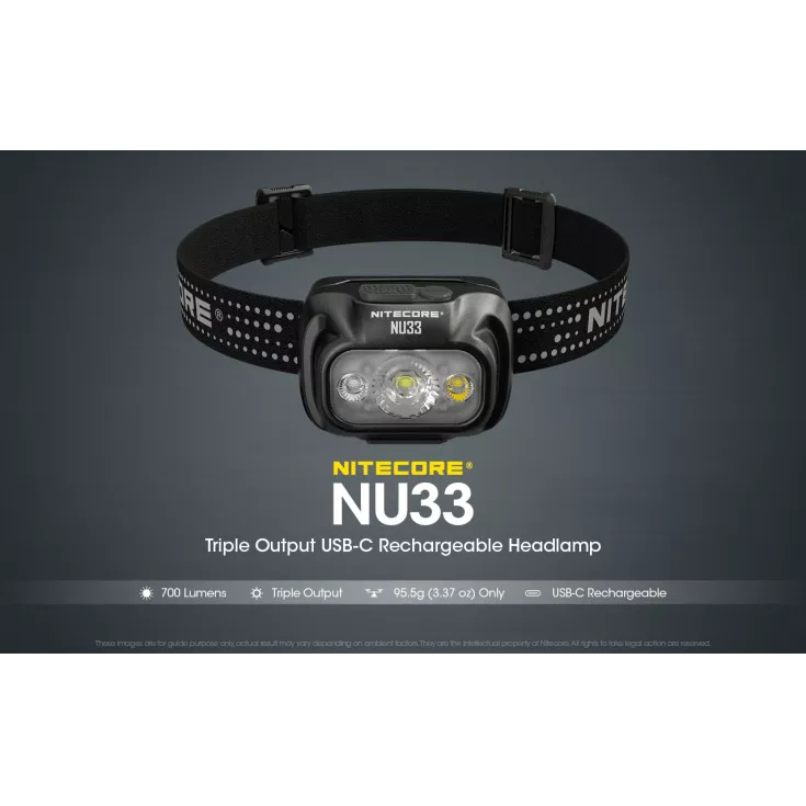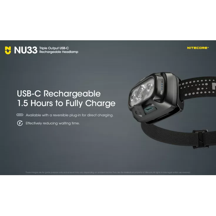 Nitecore NU33 includes: headlamp, headband, USB-C charging cable.