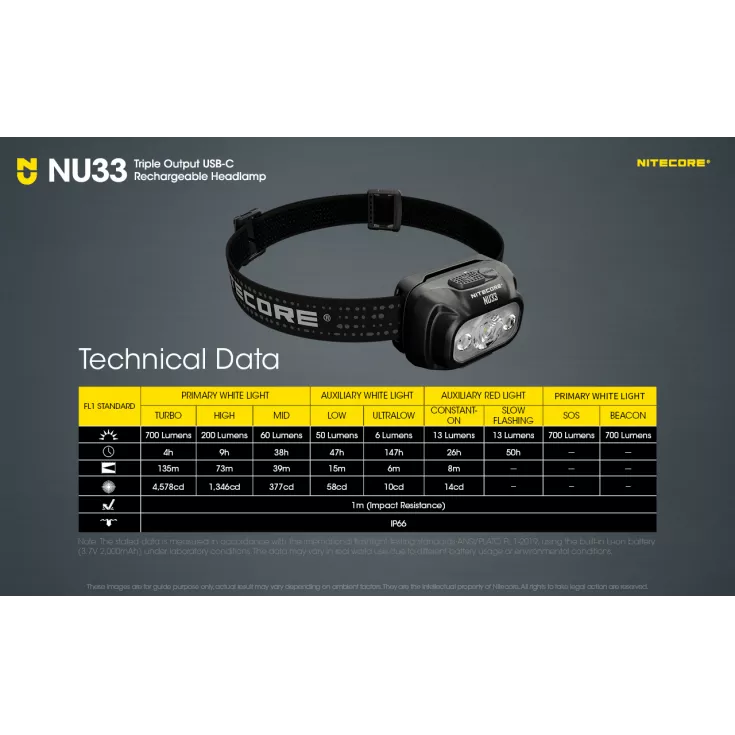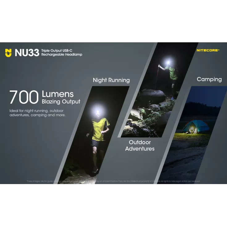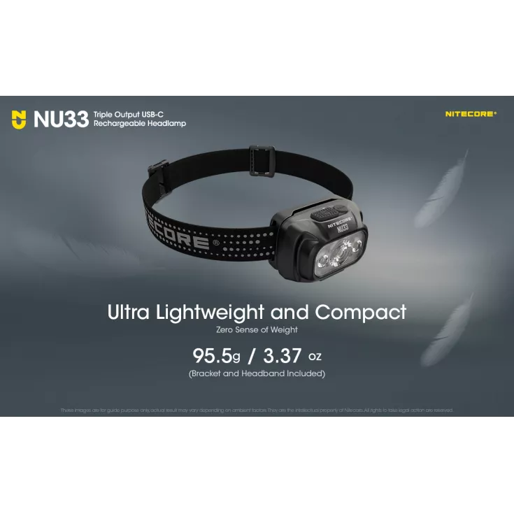 The headtorch is ultralight and compact, weighing just 95.5g. It has a durable and rugged construction, including the front housing which is made from aluminium, providing high efficiency heat dissipation and ideal for outdoor environments. The NU33 headtorch is perfect for night running, outdoor adventures and camping, plus lots more!