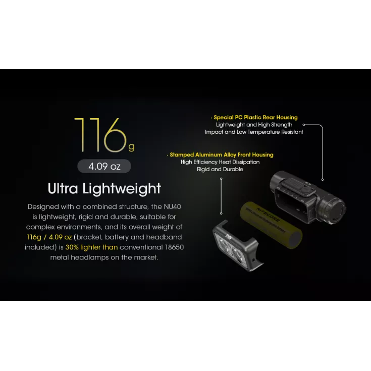 The Nitecore NU40 is perfect for lots of outdoor activities, including trekking,camping,cycling,running,maintenance and much more.